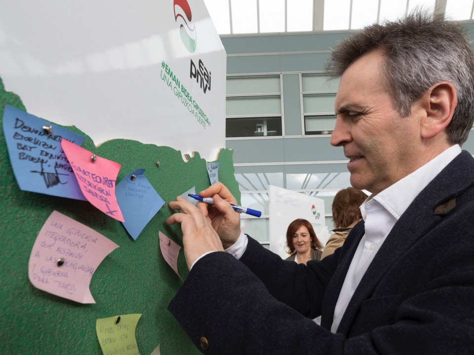 Gainera, diputatu nagusi izateko hautagaiak aurreratu duenez, hauteskundetara aurkeztuko duen programa hiru ardatz nagusiren inguruan gorpuzten da: gizarteari entzun eta konfiantza eman, seriotasunez eta zuzentasunez eutsi proiektuei eta “lehentasun osoa” ematea ekonomiari eta desberdintasunen aurkako borrokari. Olanoren esanetan, Gipuzkoa lurralde dinamikoa eta “potentzial handia” dauka. Administrazio publikoen egitekoa, ondorioz, sormen eta energia iturri horren bidelagun izatea beharko luke. “Gure kanpainako leloa eman bidea da, eta lelo horrekin esaten ari garena zera da: enplegu gehiago eta hobeagoa lortzea, ezberdintasunak murriztea, gure etorkizuna eraiki eta bermatu eta herritarrek politikarekiko duten konfiantza berreskuratzeaz ari gara. Horretaz ari gara, baita ere, Gipuzkoa sendoa nahi dugula esaten dugunean”, esan du.