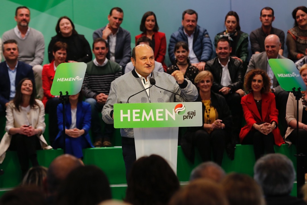 Maiatzaren 26an gehiegi ez lasaitzea eta konfiantza handiegia ez izatea eskatu die Ortuzarrek alderdikide jeltzaleei eta EAJrengan konfiantza duten guztiei. “Lehenengo inkestek emaitza onak ematen dizkigute, baina kontuz gehiegi lasaitzearekin. Ba al dakizue inkestek zertarako balio duten? Gainditzeko. Hori izango da gure lana hemendik eta hauteskundeak egin arte: ematen dizkiguten aurreikuspenak gainditzea eta parte hartze erraldoia eman dadila eskatzea. Guk ez dugu beldurrik. Botoek ez digute beldurrik ematen. Alderantziz: zenbat eta jende gehiagok bozkatu, orduan eta hobeto. Hobeto demokraziarentzat eta hobeto EAJrentzat. Apirilaren 28an ikusi genuen. Beraz, alderdikideok, mugitzea tokatzen zaigu orain. Horregatik, argi eta garbi esaten dugu datorren igandean, maiatzak 26, asko dugula jokoan”. Eta jokoan dago, nagusiki, Euskadik EAJ-PNVren eskutik aurrera egiten jarraitzea edo inposizio eta kudeaketa ezin okerragoko denboretara itzultzea, Euskadiko geografian hainbat tokitan bizi dutena.