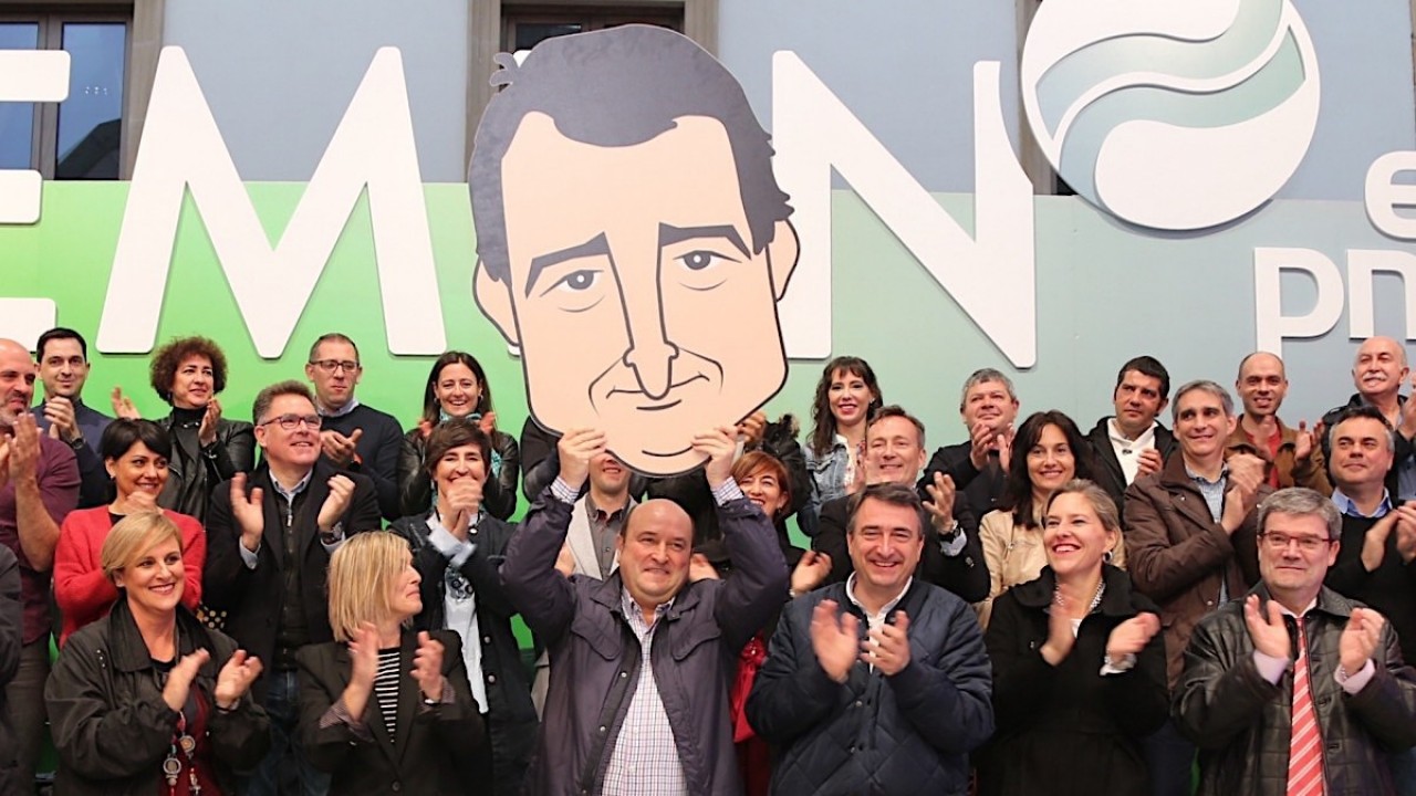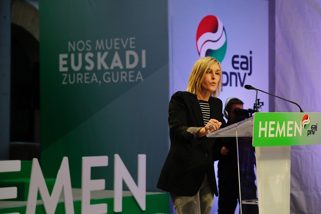 Amorebietan mitina. Andoni Ortuzar, Aitor Esteban, Idoia Sagastizabal